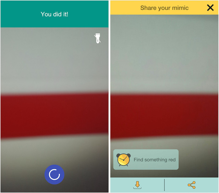 成功拍下相符颜色后,闹钟终于停止,你可以将这张图分享和保存留作纪念……
