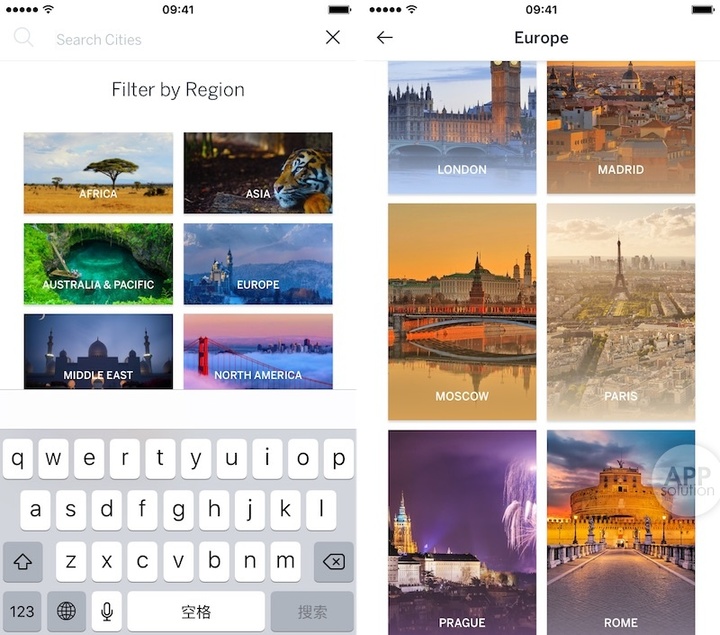 你可以在搜索功能下找到想要了解的城市,当然得是英文输入。Lonely Planet 为你归纳出各大洲值得一去的城市群,看着还是很心动的。