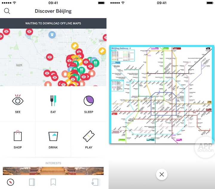 Guides by Lonely Planet 适用于 iOS 8.0+ 的 iPhone 和 Android 4.1+ 的设备,iOS 版 55.4 MB,Android 版 35 MB,完全免费。