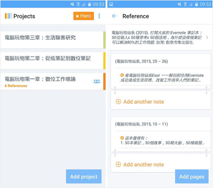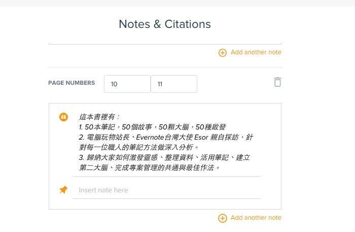 在一本书、一篇论文甚至一篇文章的文献探讨中,除了参考书目,我们也会需要摘要引用里面的一些实际内容,这时候「RefMe」也可以让我们在这本书下面进行内容的剪贴摘要。