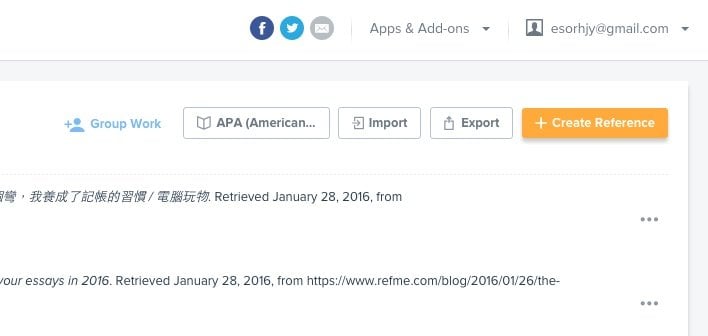 「RefMe」基本上是一个完全免费的云端服务,只要注册帐号登入后,就能在网页端开始使用。 我们可以在「RefMe」里收集各种参考书目、内容摘要,并且自动产生论文需要的参考文献引用格式,而为了研究需要,我们可以在「RefMe」中建立不同项目分类来整理这些参考文献。