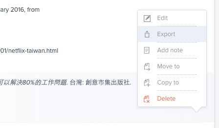 - 可以汇出到 Evernote、Onenote、Endnote、RefWorks