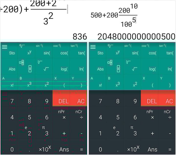 而最大的特色就是「Natural Scientific Calculator」可以多行显示算式,像是在纸上那样表现出分数与次方等公式,也能随意点击算式的任何位置来修改或添加新的方程式,虽然是按键输入但确实有纸张上的自由直觉。