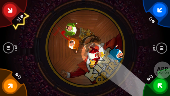 你可以操控其中一位,目标是将其他男高音撞下舞台,赢得代表出色的镁光灯聚焦。男高音会自动旋转,我们将无法直接控制他的前进方向,不过我们可以通过长摁按钮前进,或释放按钮停下这样的操作来操控他。