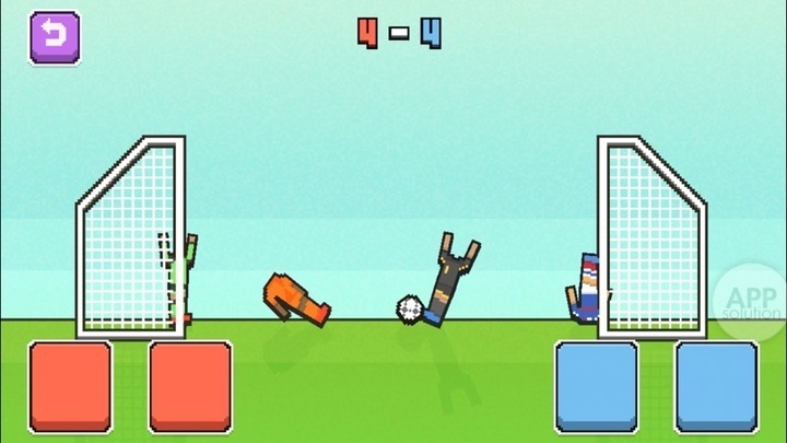 足球游戏大多模式都为球门各置一方,双方需要控制自己的球员在力保球门不失的同时,也要努力取得进球,Soccer Physics 自然也不例外,不过这一次你却只能依靠一颗按钮来控制你的两名球员的进退与跳跃。