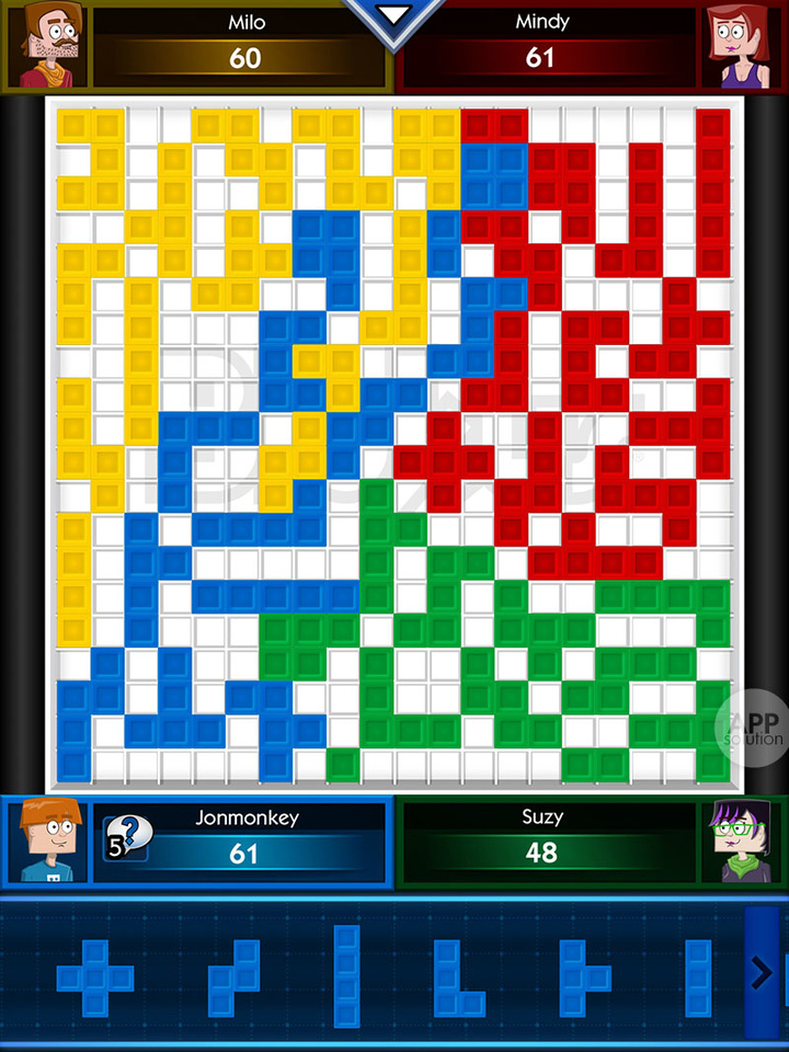 Blokus 在分类上属于益智桌游,可实际却是一款充满厮杀的多人游戏。在 Blokus 中,每位玩家会有对应颜色却不同形状的一些几何图案(类似俄罗斯方块),而我们要做的就是尽可能地扩大自己的地盘,并阻挡别人的扩扩张。