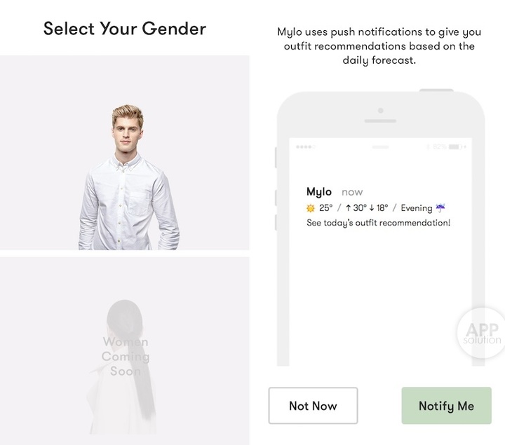 Mylo 正在做女性试衣服务,但在这之前它还是一个男性试衣服务提供者。接受它的通知还可以获得天气和适穿情况的小贴士。
