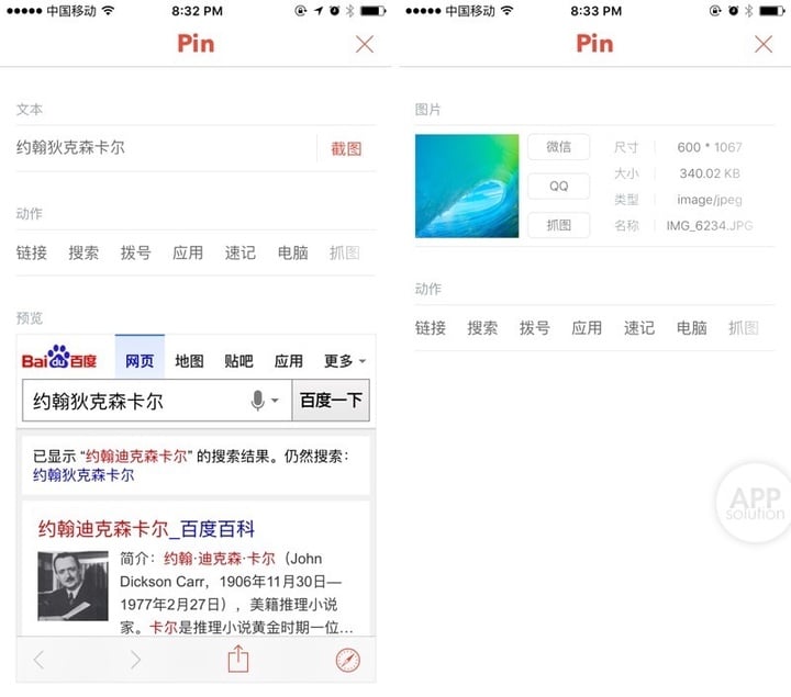 「动作」的作用类似于 Launcher,也就是支持 URL Scheme 的打开,实现各种应用之间的跳转。虽说这只是 Pin 的诸多功能之一,但其优秀的表现却让我彻底抛弃了 Launcher 之流。究其原因,我想可以归纳为以下三点: