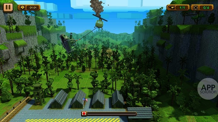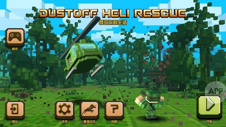 其实我想了很久,都不知道应该怎么介绍这款 Dustoff 好,因为它并不是一款单纯的 Flappy Bird 式的虐心游戏。它是一款直升机救援游戏,你的任务就是在战火纷争的冲突地带(目测应该是 MC 的世界)救出走散被抓的士兵并找回遗失的坦克。