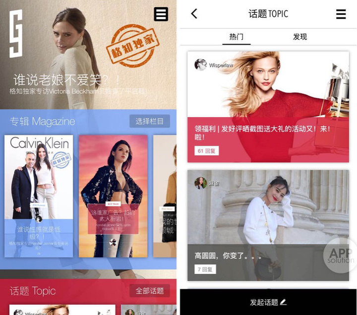 格知 GEUCHI 分为「专辑」和「话题」两个板块。「专辑」 里有不少巨星的独家专访,包括 Lady Gaga 、Adele 、Taylor Swift 等众多红毯明星。值得一提的是,在「话题」版块,你除了可以和志同道合的朋友互动外,还会在话题里公布下次采访的明星,回复你最想问他们的问题,就有可能在独家专访时被明星抽中回答哦。