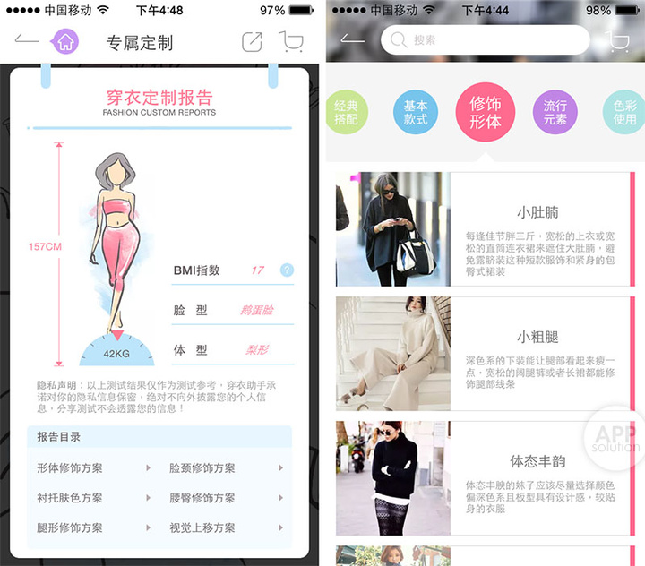 - 专属定制:通过输入个人信息,就能获取专属的穿衣定制报告,避开雷区