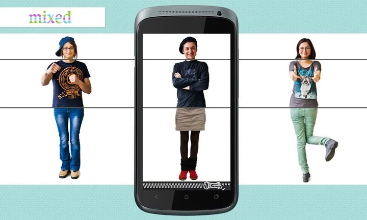Mix Me 是一款轻量好用的服装搭配应用。和其他搭配类应用一样,它不提供搭配的参考样式,你需要自己拍摄或者导入照片。它会自动切割颈部以上、上装、下装,通过左右滑动,进行搭配。