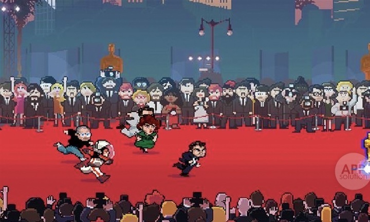 游戏需要操纵小李子向着小金人奔跑,途中得穿越狗仔的各种围追堵截,跑赢同样获得男主提名的马特·达蒙(宇航员)、迈克尔·法斯宾德(乔布斯)、布莱恩·科兰斯顿(白西装)和埃迪·雷德梅尼(女装)(四人随机出现一个),还要躲闪泰坦尼克号的冰山、Lady Gaga 等重重阻隔。碰到「金球奖」、「演员工会奖」可以加分或补血。