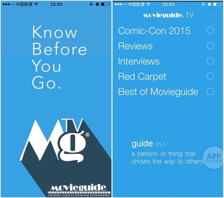 Movieguide® TV 适用于 iOS 6.0+ 的 iPhone 及 Android 2.3.3+ 的设备,iOS 版 52.5 MB,Android 版 23 MB,完全免费。