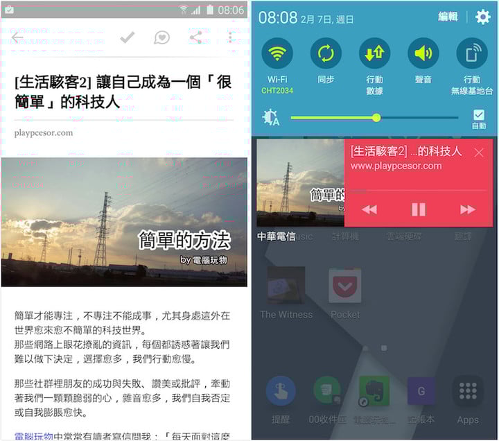 而且最棒的是,Pocket 可以像是音乐播放软体那样,在朗读文章时我们就算跳出 App,文章还是会继续朗读。