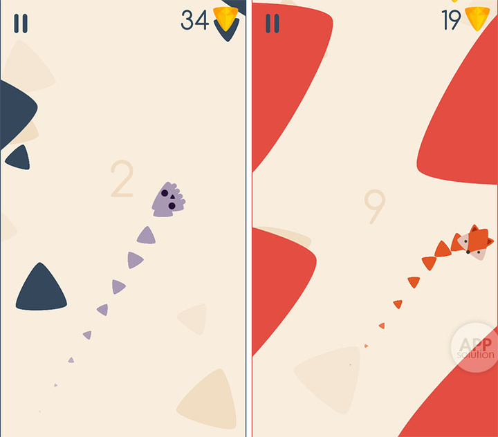 Triangle Dash! 的画风超萌,名字简单明了地诠释了它的玩法:「三角形」不停地碰撞墙壁翻弹飞升。