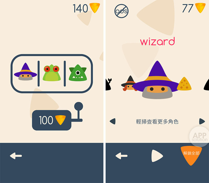 这个游戏最吸引我的地方在于,除了一开始见到的飞行萌物 Triangle,我们还可以通过消耗宝石获取抽奖机会,兑换别的小可爱。