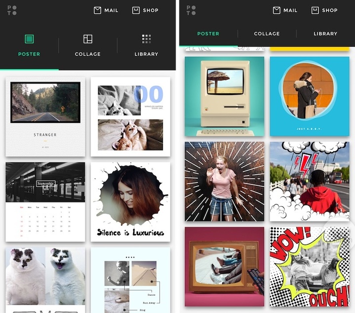 Poto 提供了多种相框模板,充分运用留白和图文的搭配技巧,同时提供一些拟物和贴图方案,进可文艺如画展,退可有趣似嬉皮。