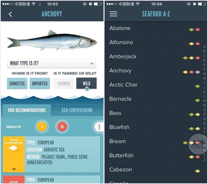「识货」意味着对食客的环保素养也提出了更高的要求。送进嘴巴里的美食只有用的是地球常备的可持续材料,你才能毫无负担、心情愉悦地享受好每一顿。Seafood Watch 就是一款能够帮助你了解海鲜食材,并且提供环保选购建议的应用。