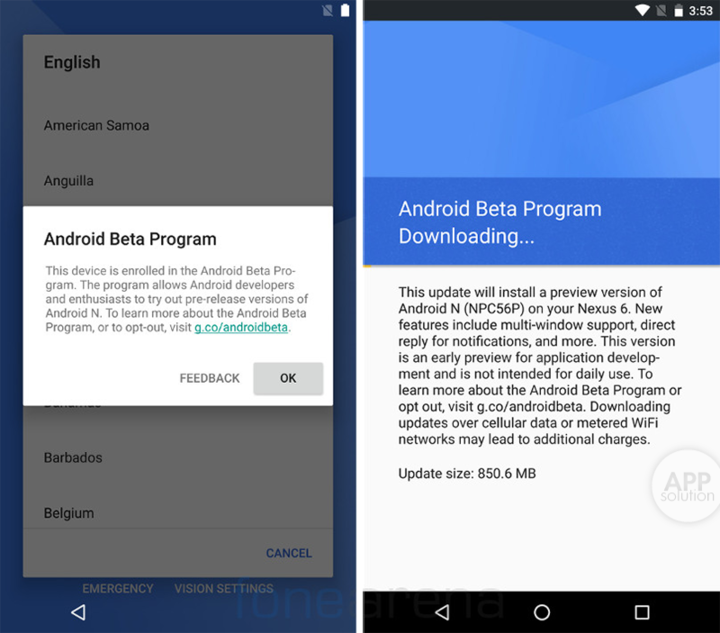 Google 也开始针对开发者和玩家推出了 Beta 的体验计划,在 Android N 的下载界面,用户一旦选择注册「Android Beta」项目,则会比其他用户更快收到新版的升级推送。