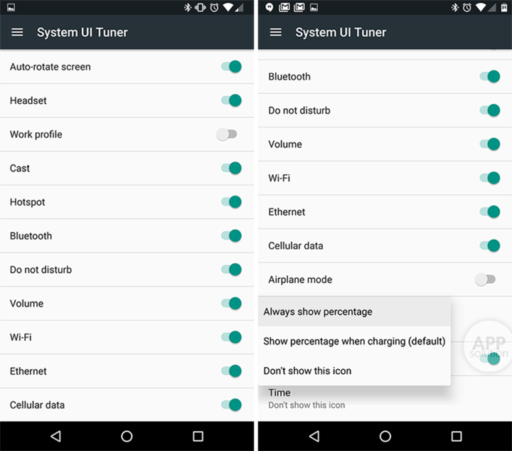 在系统设置中,你能选择是否显示诸如蓝牙、屏幕旋转、音量、Wi-Fi、飞行模式等图标,同时也能更改时间(支持具体到秒)的电池(支持百分比)的显示样式。