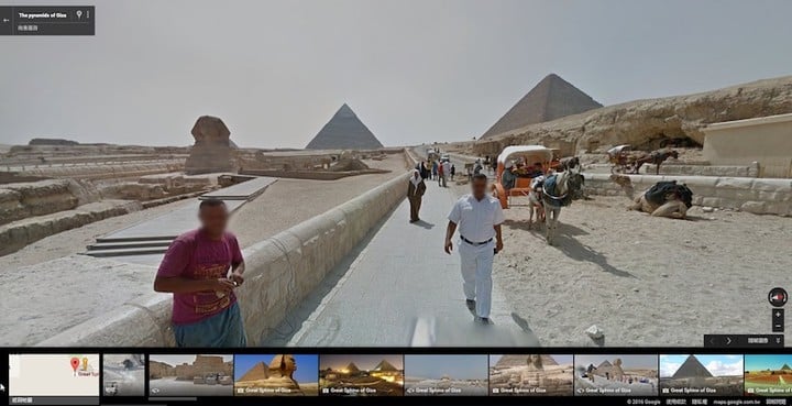 埃及最知名的金字塔,狮身人面像与金字塔群都已经具备了完整的 Google 街景可以让你身处其中,一一游览。