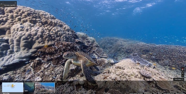 Google 街景不仅可以上山,也真的能下海,在众多 Google 街景的海底世界里,我最喜爱的是大堡礁的潜水之旅,美丽而深邃的海底世界,在 Google 街景里有非常清晰真实的呈现。