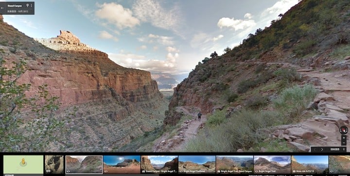 靠着背在背包上,叫做 Trekker 的环景摄影机,Google 街景团队实际一步一脚印的去把世界上各种风景名胜徒步走一遍,其中就包含了美国著名的大峡谷风景,你可以在线上点击完成美国大西部的长征。