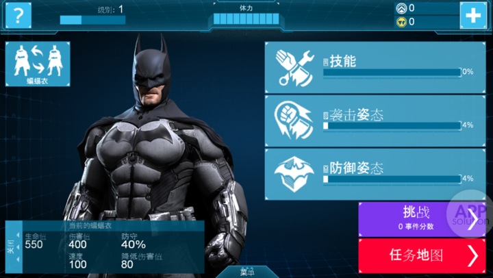 游戏点击屏幕普通攻击,基础三连击之后就会出现 QTE 反应滑动打击。补血需要你狂点屏幕,点击左/右下角可以切换攻击模式。通过赚取游戏货币和奖励,蝙蝠侠可以提高对罪犯的杀伤力,并且解锁许多特殊优势的蝙蝠衣。另外,将手机上的游戏与 PC 版游戏连接,有特别彩蛋。