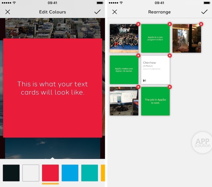 个性化方面,Monogram 允许你调整文字卡片的颜色,以及全局查看卡片的排布以便修改,功能不多但比较实用,做好之后可以自行预览一遍。