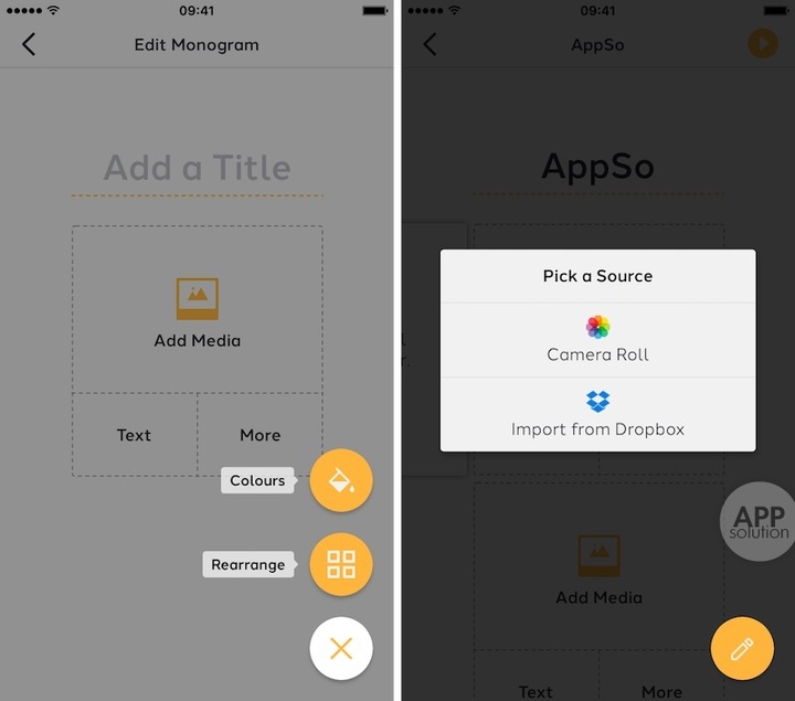 Monogram 的使用非常简单,主要是图片和文本的添加,图片来自本地相册和 Dropbox 云存储。