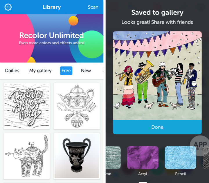 Recolor 使用于 iOS 8.0+ 的 iPhone 和 iPad,大小 47.7 MB,免费有内购。