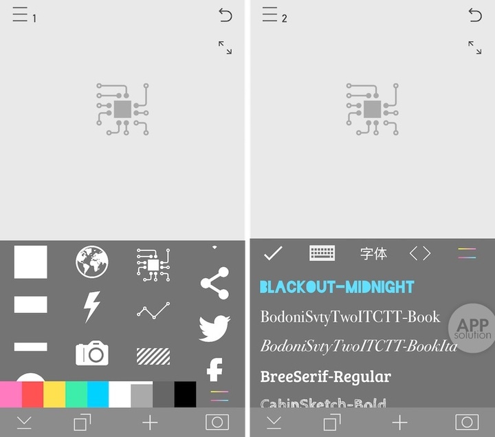 有感于 AlphaGo 对战李世乭的宣传海报,我尝试了一个简易的设计元素搭配。Create 提供从基本形状到特殊图案的多种图标,更多图标可付费购买。字体方面可选择的空间也比较大,字体大小可调节。