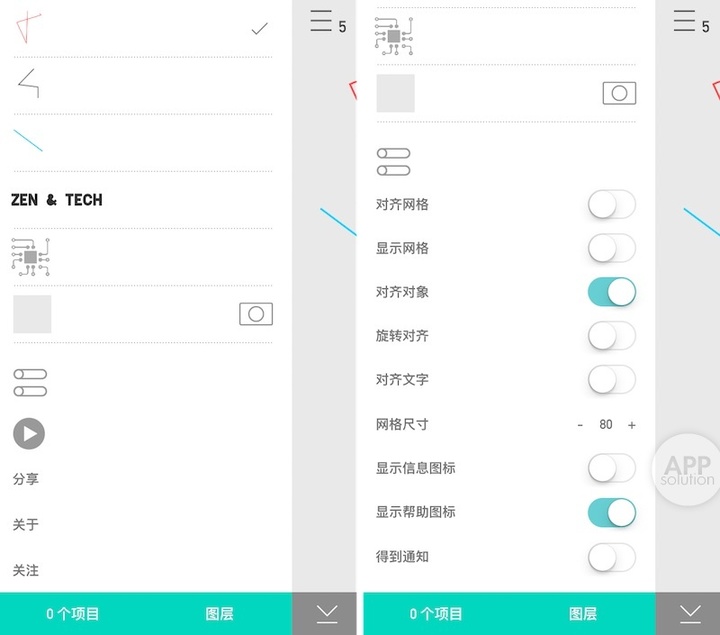 左侧侧边栏中包含了图层管理和多种可调节的设置方案,满足你对工作台、辅助工具的配置。