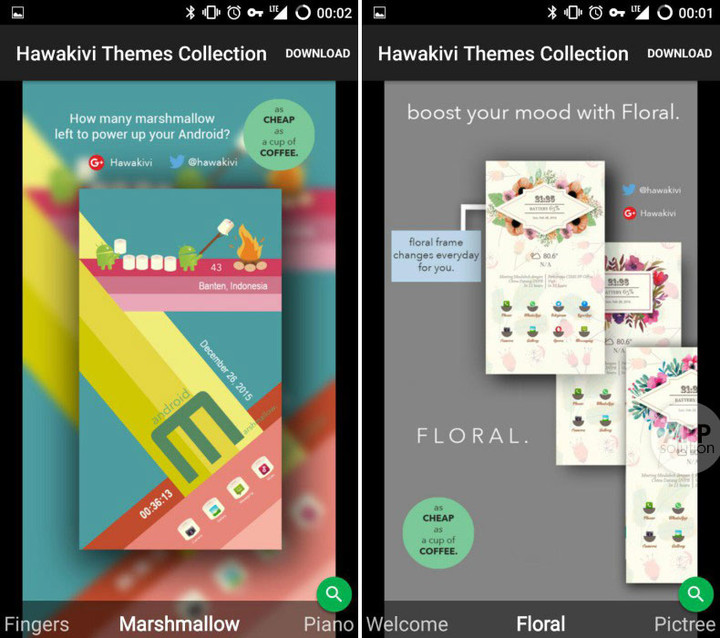 里面有很多作者做出来的作品集,不过需要从 Google Play 中下载,其中有一些主题需要付费。顺便提一句,ChYK 就是这个 app 的开发者,也是之前的 ssLauncher 的开发者,所以之前 ssLauncher 的密钥也可以在这里使用。