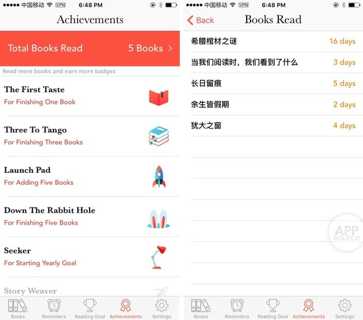 成就制度也是 Bookling 中不小的亮点,虽说所谓的成就并没有物质上的奖励,不过相信再懒的人,也会为了里面精致的奖章再多读几本书吧。