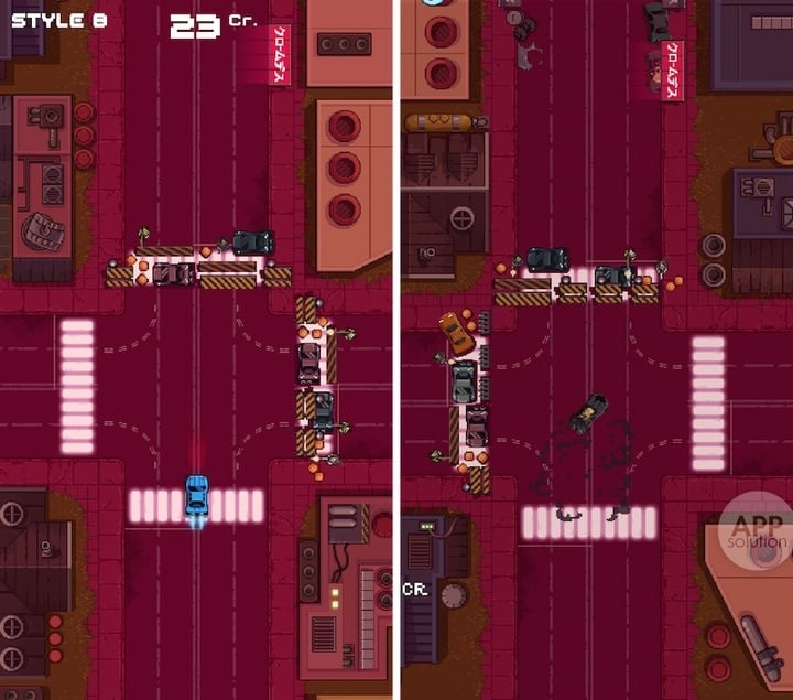 「逃跑」是唯一目标,为什么要逃不是你要考虑的问题。在复古而动感的电子音乐中,玩家控制的逃逸车辆要在堵截者面前完成方向选择,潇洒飘逸开溜。