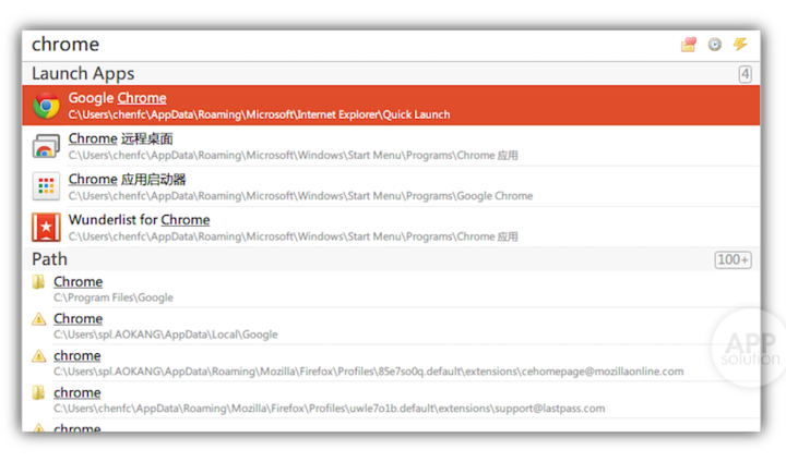 Listary 会将 app 与文件夹自动分类,方便我们开启 app 或者查找文件,并且查找的速度要远远超过 Win 的自带搜索,键入与结果的输出几乎是在同一时间完成。虽然它无法像 Spotlight 和 Win 的自带搜索功能那样连文件内容也能搜索,但也可以满足基本需求。