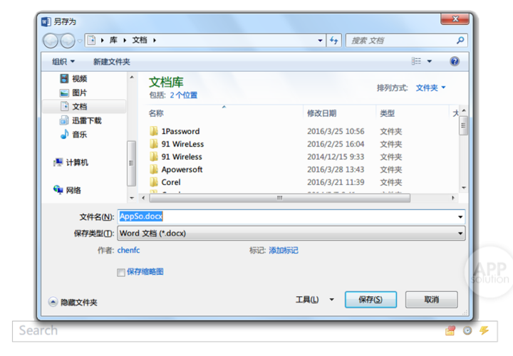 Listary 的另一个特色功能:保存文件时,在附带的 Listary 搜索框中输入欲保存的文件夹的名称即可马上「抵达目的地」。不用点击无数下来寻找目标文件夹,在一定程度上类似 Mac 上的 Default Folder X。
