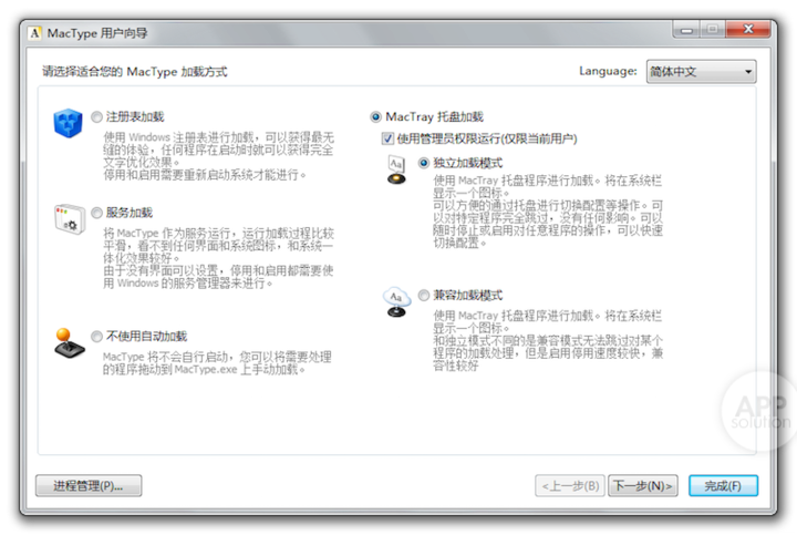 MacType 是一款让 Win 显示近似 Mac 字体一款软件。安装后,推荐选择托盘加载,会获得多种字体渲染样式,选择一个让自己眼睛看着最舒服的就好。