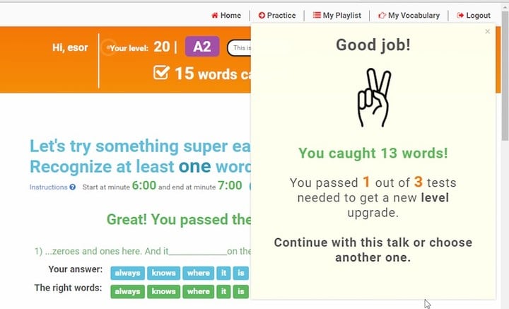 以上就是 LingoRank 这个免费英文听力测验网站的基本功能,它算是一个中阶以上的英文听力测验服务,可以用来检验我们的英文听力水准,看看之前的学习效果。当然,反覆测验中一样可以强化自己的英文听力能力,又同时学到 TED 里的各种知识。