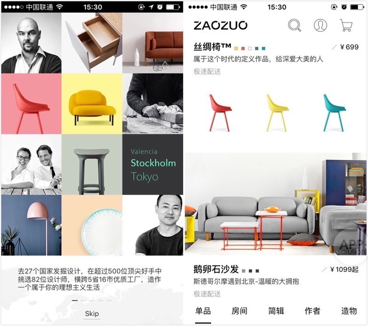 造作是一个国际设计家居品牌,其独家正版的设计来自 27 个国家的国际奖项设计师之手。旗下的官方客户端详尽展示了这些优雅的设计作品,同时提供了购买途径。造作的每一件家居单品都将极简风格发挥到淋漓尽致,再加上空间层面的减法,给人干净明朗的「乐活」之感。
