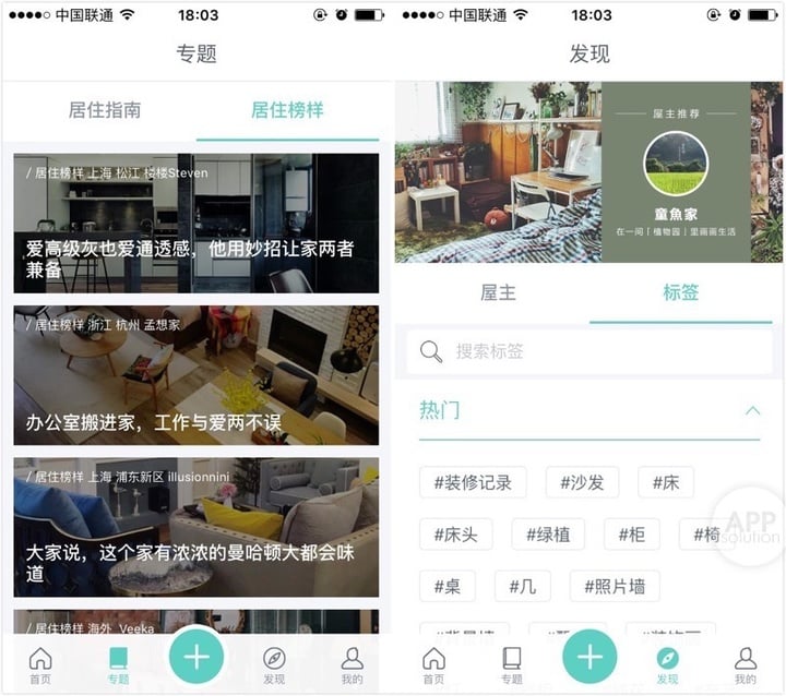 在「发现」频道,你可以看到更多美好的真实住宅,通过选择特定的风格、空间、家具等细分标签,可以获得你最需要的家居秘籍参考。