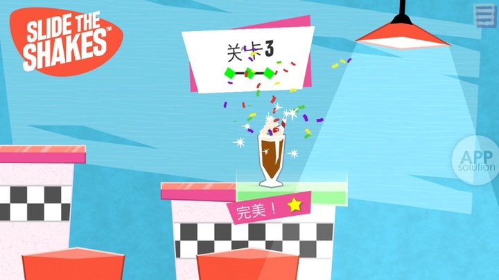 游戏的关卡有一百个,不同材质与形状的桌面,让这款休闲游戏也充满挑战。游戏通关甚至还能解锁真实的奶昔食谱,也许会受很多女性玩家的欢迎。