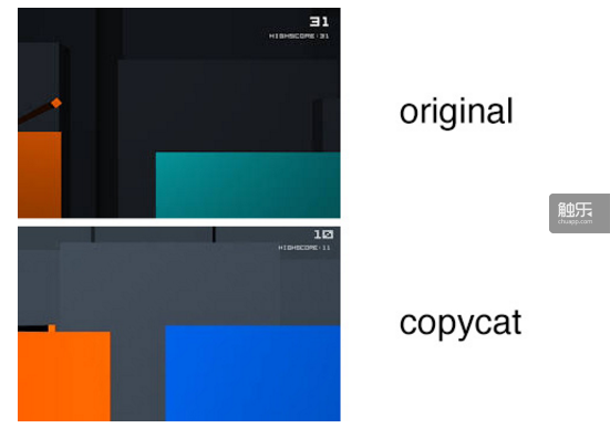 不管怎样,他主动把游戏从商店下架了。我相信他是一个好人,我不认为主动下架自己游戏的事情会经常发生。几周后,我发现另一个游戏,这个游戏改变了更多的画面图形,但如果仔细去看它的细节,会发现它使用了我的源代码。最值得注意的是,这款游戏也叫 Chameleon Run。游戏创意及源代码被抄袭的事情再一次发生了,我决定删除掉 Ludum 网站公布的源代码。