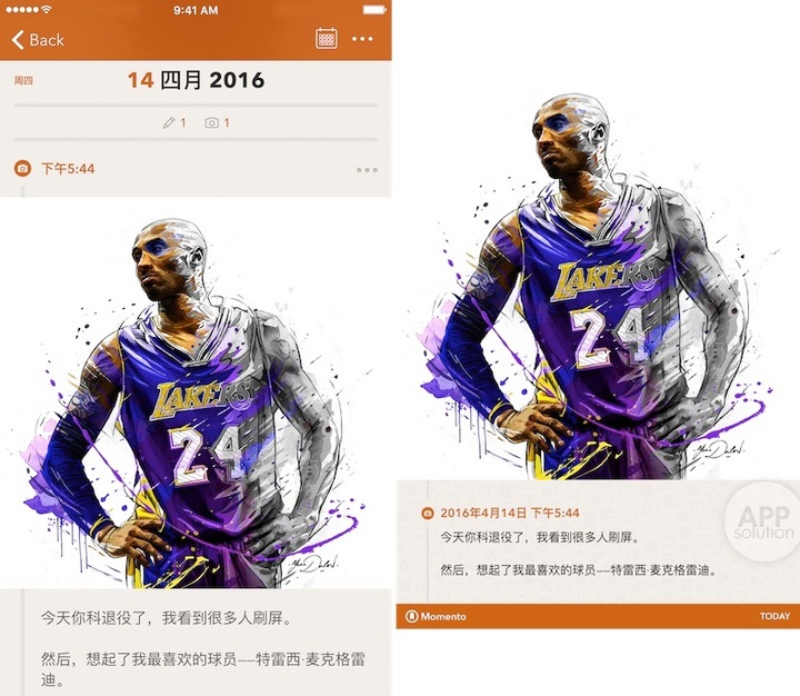 大家熟知的锤子便签、WeicoNote 等长微博工具就不多介绍了,在这里我介绍一下 Momento 这个日记 app 的隐藏功能:那就是它可以将你的日记条目生成长图,并附上记录的日期。效果大概是这个样子,我个人蛮喜欢的。