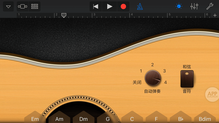 GarageBand 里的「智能乐器」将乐器的拟真形态大幅简化成了触控区,它的「和弦视图」和「自动演奏」功能还能让你只需一次点击,就「弹出」美妙的旋律。