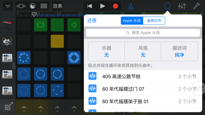 3. 音乐白痴的福音:智能乐器、循环乐段模板(Apple Loops)、虚拟鼓手