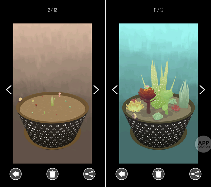那么,AppSo (微信号 appsolution)推荐你试玩一下 Viridi 这款植物育成游戏,再也不怕忘记浇水施肥,目睹植物们的死亡了。