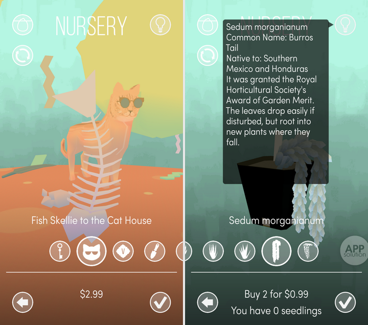 你也可以前往「NURSERY」购买自己喜欢的植物、花盆或是场景。在那里,每一株植物都附有详尽的介绍。